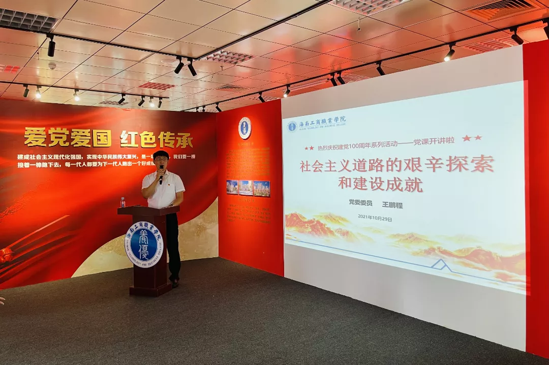 本期專題黨課的主題是《社會(huì)主義道路的艱辛探索和建設(shè)成就》,由黨委委員、旅游藝術(shù)學(xué)院黨支部書(shū)記王鵬程主講。王書(shū)記從黨的八大和中國(guó)社會(huì)主義建設(shè)的良好開(kāi)端、社會(huì)主義道路的艱辛探索、社會(huì)主義建設(shè)初期所取得的偉大建設(shè)成就、社會(huì)主義建設(shè)探索時(shí)期的時(shí)代精神等內(nèi)容展開(kāi)講述,帶領(lǐng)師生們一同感悟黨領(lǐng)導(dǎo)人民經(jīng)歷艱辛和曲折,通過(guò)探索和建設(shè)社會(huì)主義道路取得的獨(dú)創(chuàng)性理論成果和巨大成就。