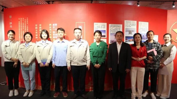 座談會(huì)后,陳立麗副校長(zhǎng)陪同中建一局北京公司海口國(guó)際免稅城項(xiàng)目部一行領(lǐng)導(dǎo)參觀了我校黨員學(xué)習(xí)教育園地并合影留念。
