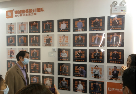 ?在捷誠裝飾集團(tuán)設(shè)計(jì)部經(jīng)理吳彤、人事經(jīng)理陳嘉萍的陪同下,我校走訪團(tuán)隊(duì)參觀捷誠集團(tuán)樣板間、設(shè)計(jì)部以及較大規(guī)模一站式服務(wù)的裝飾材料和軟裝制品展示廳;詳細(xì)了解實(shí)習(xí)生在企業(yè)學(xué)習(xí)、成長情況。