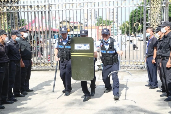 ?為提高學校安保人員處置突發(fā)暴力事件的能力,守護師生平安,營造穩(wěn)定和諧的校園環(huán)境,5月25日,學校特邀請海口市公安局國興派出所民警來校指導我校開展安保人員應急技能培訓及應對暴力恐怖襲擊事件應急處置演練。