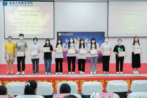 ?在本屆閱讀推廣系列活動中,還有“品閱天下經(jīng)典? 放逐心靈遠航”線上讀書打卡評選、“讀者之星”評選,“書香校園 最美篇章”經(jīng)典誦讀大賽評選、“優(yōu)秀指導老師”評選等,當晚學校也對這些活動中產生出的優(yōu)秀個人進行了頒獎,對各學院(部)進行了表彰。