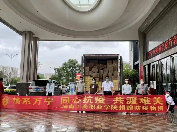 ????情系萬(wàn)寧,同心抗疫,委員在行動(dòng)。8月,自海南疫情發(fā)生以來(lái),三亞、萬(wàn)寧等地疫情一直牽動(dòng)人心,海南省政協(xié)常委、海南工商職業(yè)學(xué)院董事長(zhǎng)唐捷主動(dòng)擔(dān)當(dāng)作為,當(dāng)了解到身處萬(wàn)寧市抗“疫”一線的醫(yī)護(hù)人員、志愿者不顧酷暑帶來(lái)的不適,勇做“逆行者”,支援萬(wàn)寧防疫,急需防疫物資,唐捷董事長(zhǎng)踴躍響應(yīng)號(hào)召,奉獻(xiàn)愛心,捐贈(zèng)物資。8月25日上午,滿載牛奶、面包、礦泉水、餅干、菊花茶、王老吉、方便面等價(jià)值近5萬(wàn)元的防疫物資車從海南工商職業(yè)學(xué)院出發(fā),奔赴萬(wàn)寧,為萬(wàn)寧早日戰(zhàn)勝疫情提供物資保障。下午,捐贈(zèng)物資車順利抵達(dá)萬(wàn)寧市迎賓館,萬(wàn)寧市政協(xié)主席程江洪接收捐贈(zèng)物資,并與我校二級(jí)學(xué)院黨支部書記林綠葉、蘇微微合影,捐贈(zèng)物資主要供給給一線防疫人員。