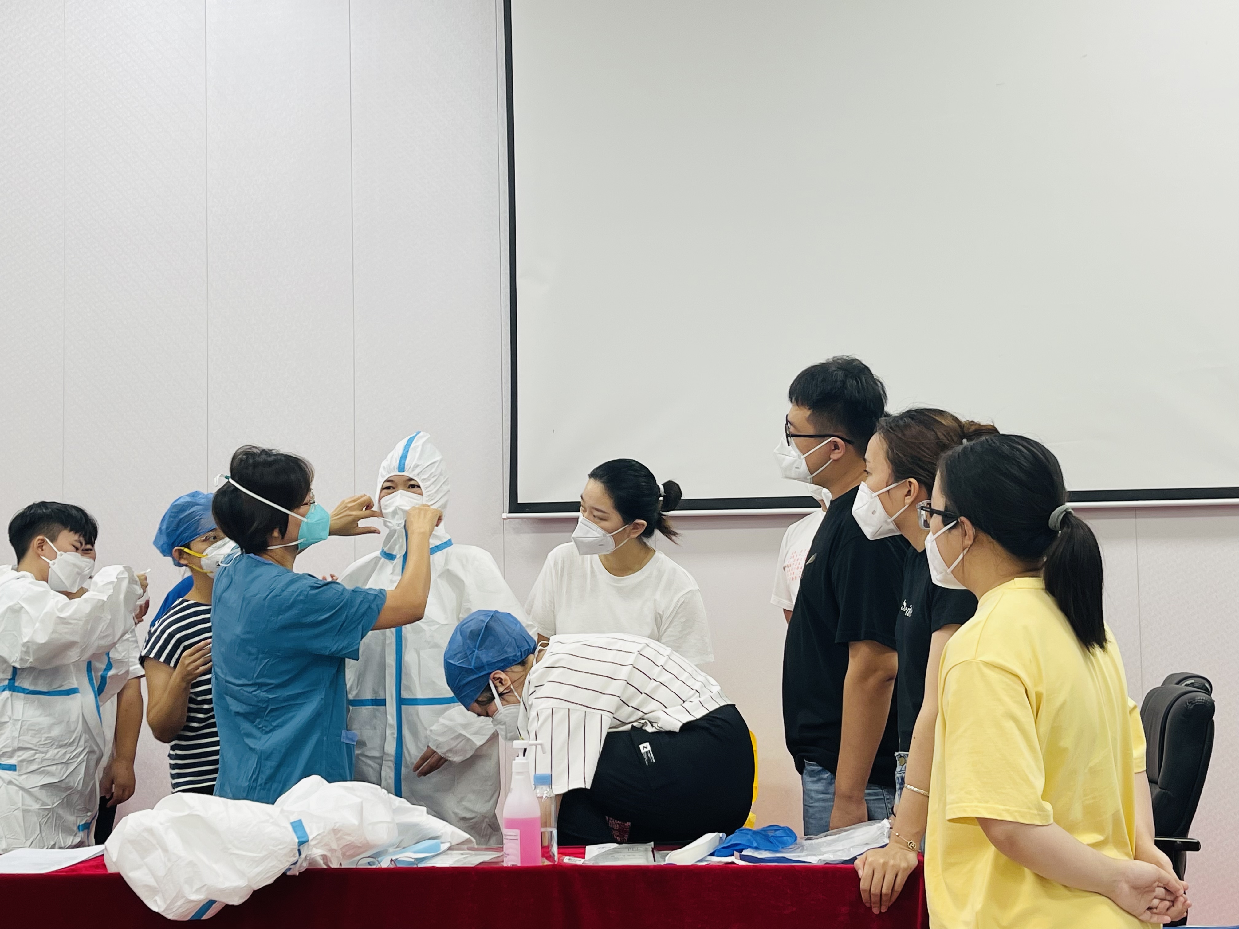 ?會(huì)上,省市屬公立醫(yī)院醫(yī)護(hù)人員圍繞核酸采集全過程,包括核酸信息采集錄入流程、采樣人員的基本要求、核酸采樣的種類、核酸標(biāo)本采集方法、核酸標(biāo)本的保存及送檢等內(nèi)容進(jìn)行詳細(xì)講解,并現(xiàn)場(chǎng)示范采樣人員防護(hù)服的穿脫步驟。此次培訓(xùn)以“理論、實(shí)操、練習(xí)、考核”相結(jié)合的方式開展,參訓(xùn)教師學(xué)習(xí)后即可參加現(xiàn)場(chǎng)考核,考核合格的教職工在今后學(xué)校核酸檢測(cè)工作中可獨(dú)立完成核酸采樣等相關(guān)工作。