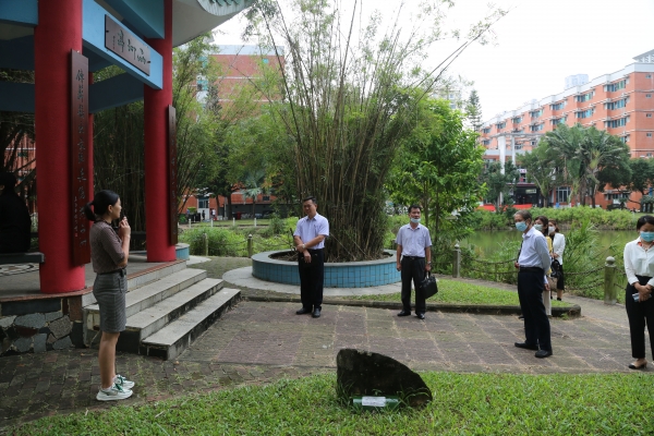 在唐胄廣場前,陳立麗副校長向考察團(tuán)一行介紹學(xué)校辦學(xué)的歷史淵源。考察團(tuán)還來到養(yǎng)優(yōu)長廊楹聯(lián)、西洲亭等校園文化景觀區(qū)參觀,隨后前往學(xué)前教育專業(yè)實(shí)訓(xùn)室、信工校企合作IT專業(yè)實(shí)訓(xùn)室、建工綜合實(shí)訓(xùn)室等地考察。