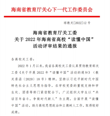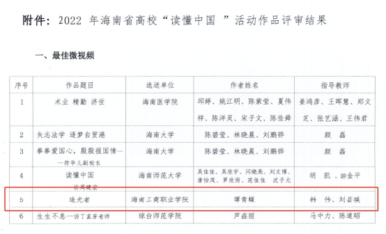 我校學(xué)子摘得2022年海南省高校“讀懂中國”活動“最佳微視頻”和“優(yōu)秀征文”獎