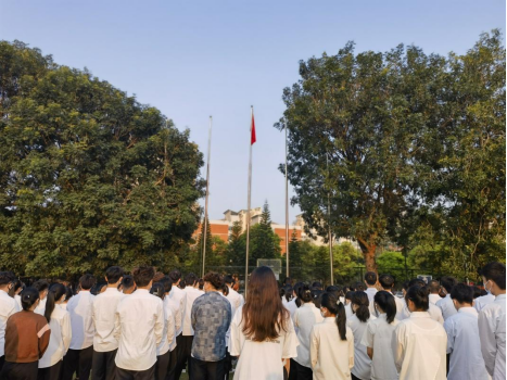 升旗儀式在莊嚴(yán)的國(guó)歌聲中拉開(kāi)序幕,全校師生齊唱國(guó)歌,表達(dá)對(duì)祖國(guó)的熱愛(ài)之情。