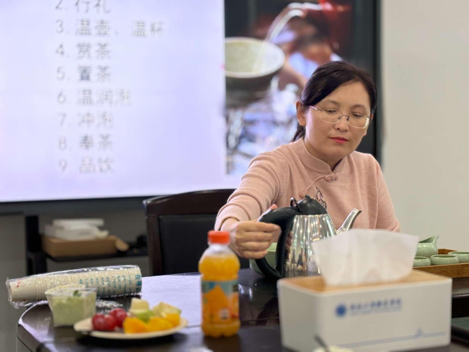 本網(wǎng)訊(通訊員 田恬安)為迎接第114個“三八”國際婦女節(jié),增強女教職工凝聚力,豐富女教職工文化生活,鼓勵女教職工建功崗位,助力學(xué)校高質(zhì)量發(fā)展,3月7日下午,校工會舉辦了“巾幗同行,共品茶香”主題茶藝沙龍活動。本次活動特邀旅游藝術(shù)學(xué)院資深茶藝教師兌艷紅,為大家深入講解中國茶文化和茶禮儀,并演示如何溫杯、置茶、沖泡、倒茶、奉茶、品茶等。各分工會派代表參加了此次活動。