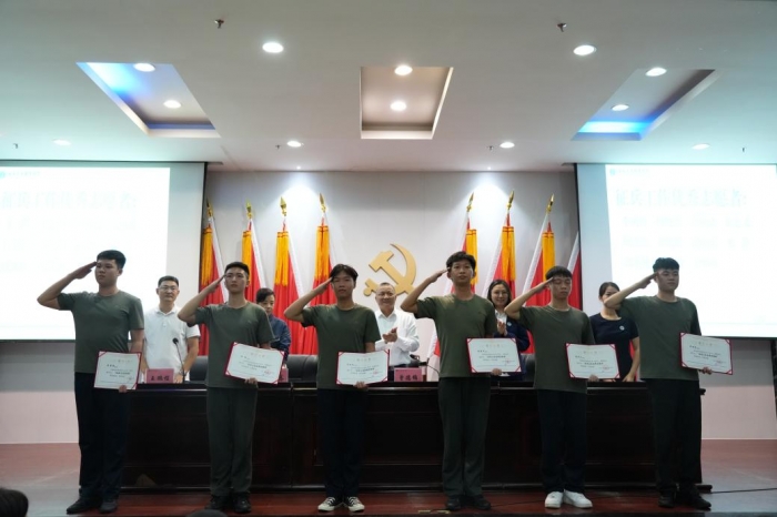 ?與會(huì)領(lǐng)導(dǎo)分別為征兵工作先進(jìn)單位、征兵工作先進(jìn)個(gè)人、征兵工作優(yōu)秀志愿者頒發(fā)牌匾和證書(shū)。