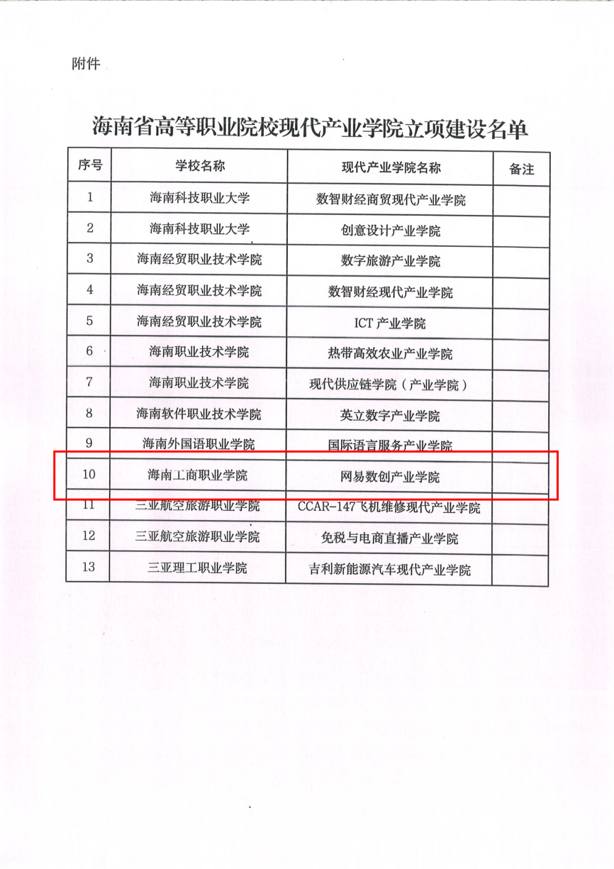 ?(通訊員 王晶晶)12月4日,根據(jù)《海南省教育廳關(guān)于公布海南省高等職業(yè)院校現(xiàn)代產(chǎn)業(yè)學(xué)院立項(xiàng)建設(shè)名單的通知》(瓊教高〔2024〕117號(hào))文件通知,我校網(wǎng)易數(shù)創(chuàng)產(chǎn)業(yè)學(xué)院獲立項(xiàng)建設(shè)。