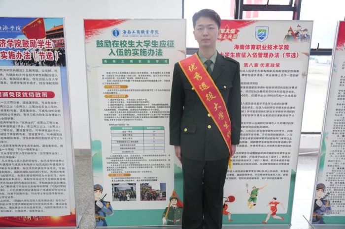 ?活動現(xiàn)場氣氛熱烈,瓊山區(qū)人武部工作人員詳細(xì)介紹了征兵政策、報名流程、軍隊生活及軍人待遇等方面內(nèi)容。我校優(yōu)秀退役軍人大學(xué)生代表林天樂同學(xué)上臺作了精彩分享,讓現(xiàn)場師生對征兵入伍有了更直觀的認(rèn)識。